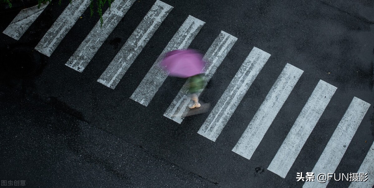 這樣我們就可以利用這個特點,來尋找雨天時段的色彩,比如馬路上的黃線、斑馬線;或是行人打著的彩色雨傘或雨衣;也可以試著去尋找古建築中的那種色彩元素。